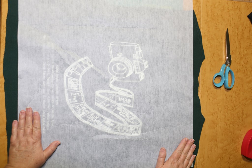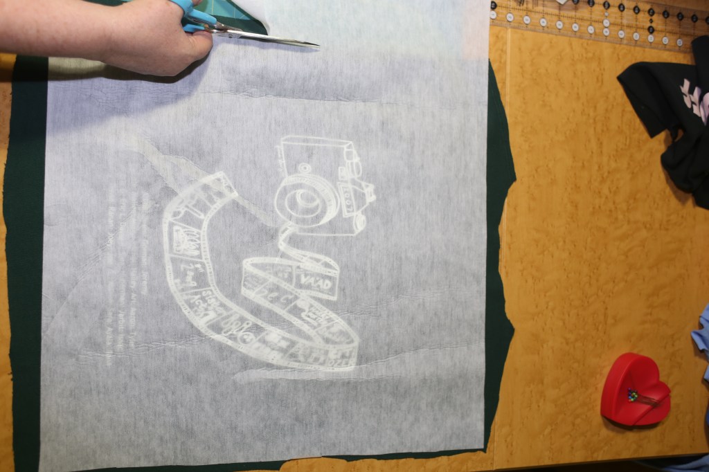 Cutting…. Note: Using the largest piece of interfacing possible will allow me to use the greatest amount of the shirt logo.  I’ll be trimming the shirt later (sometimes trimming at several points during the process…)