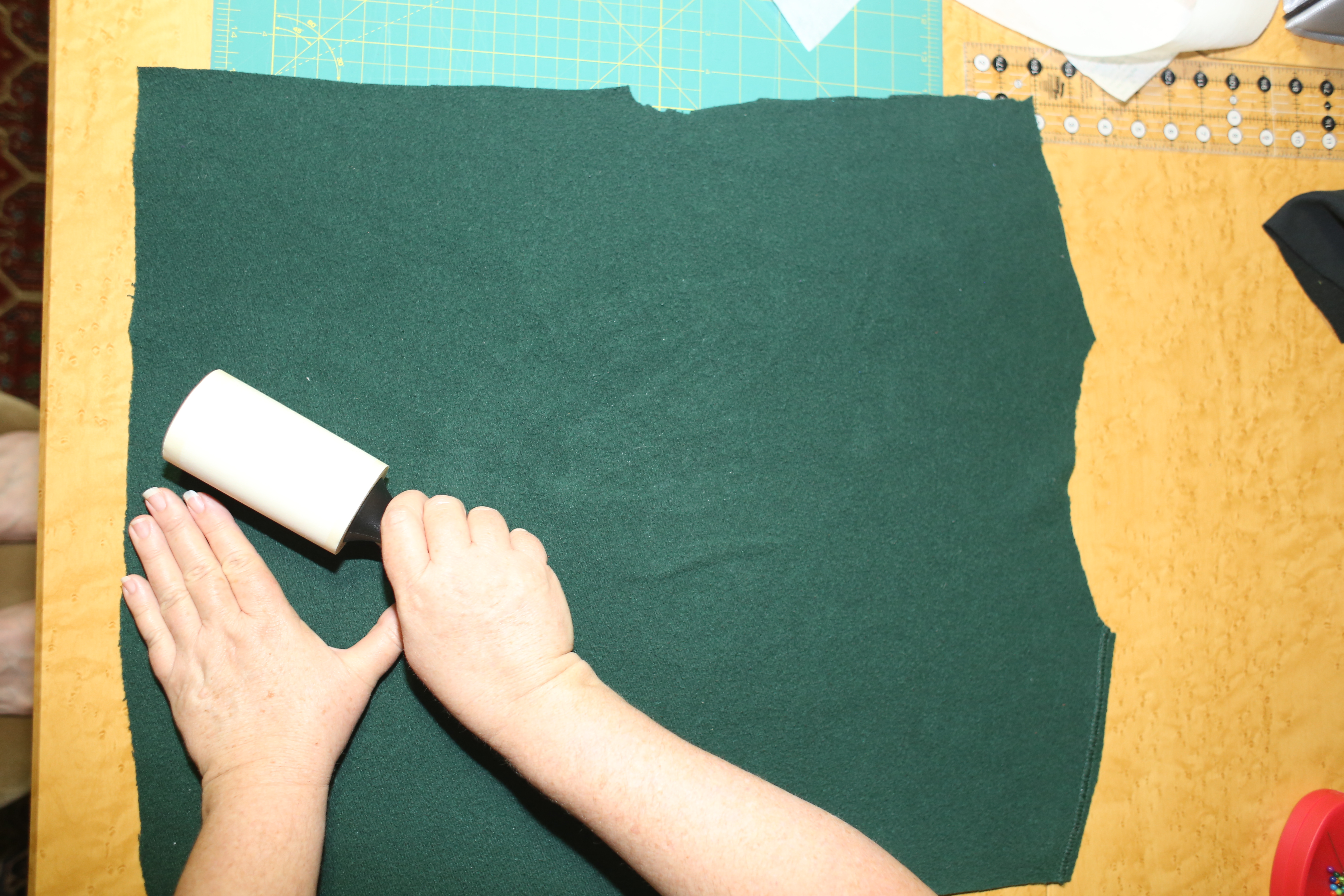 First step: Remove lint on the back side of the shirt using a lint roller.