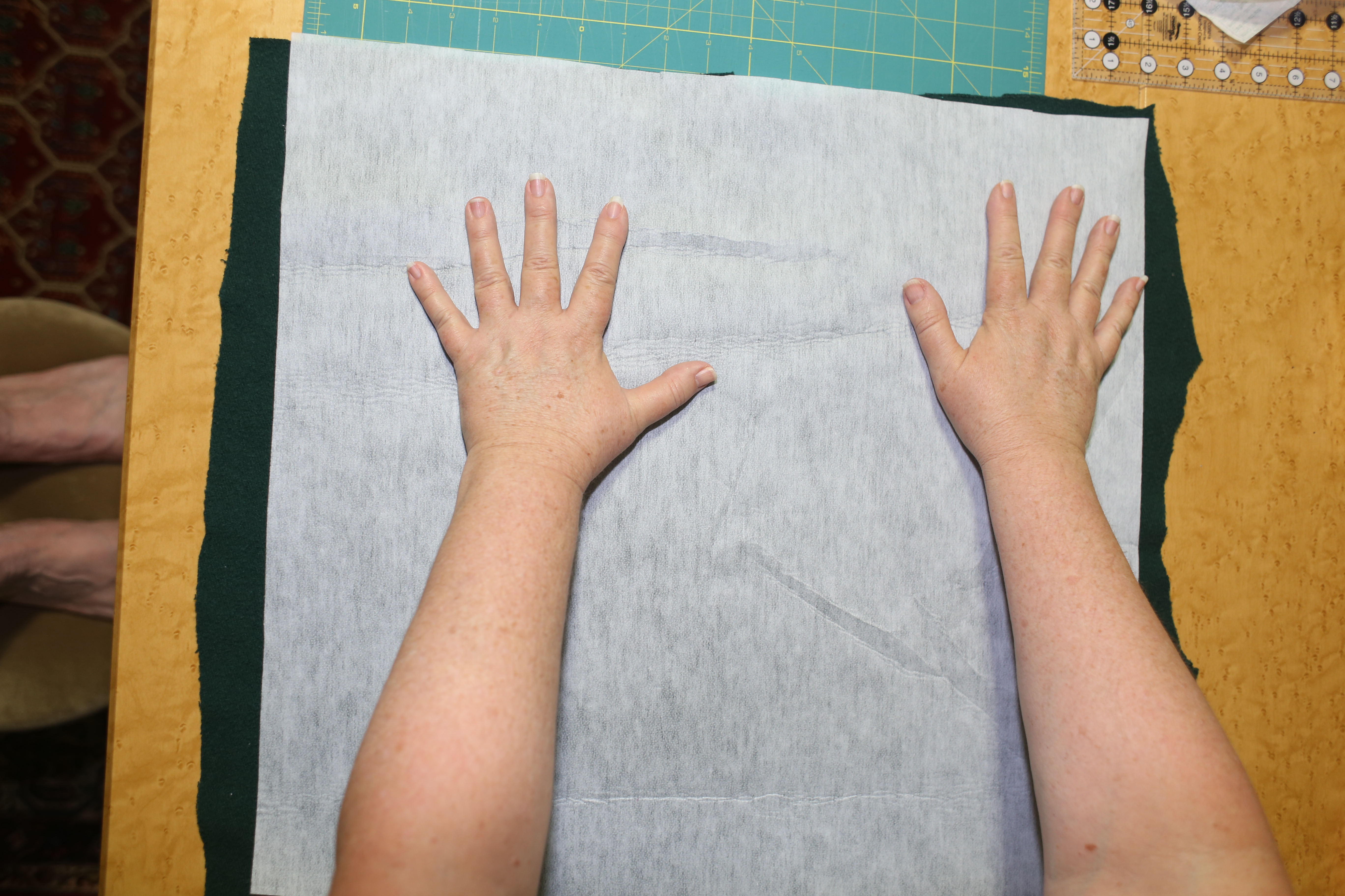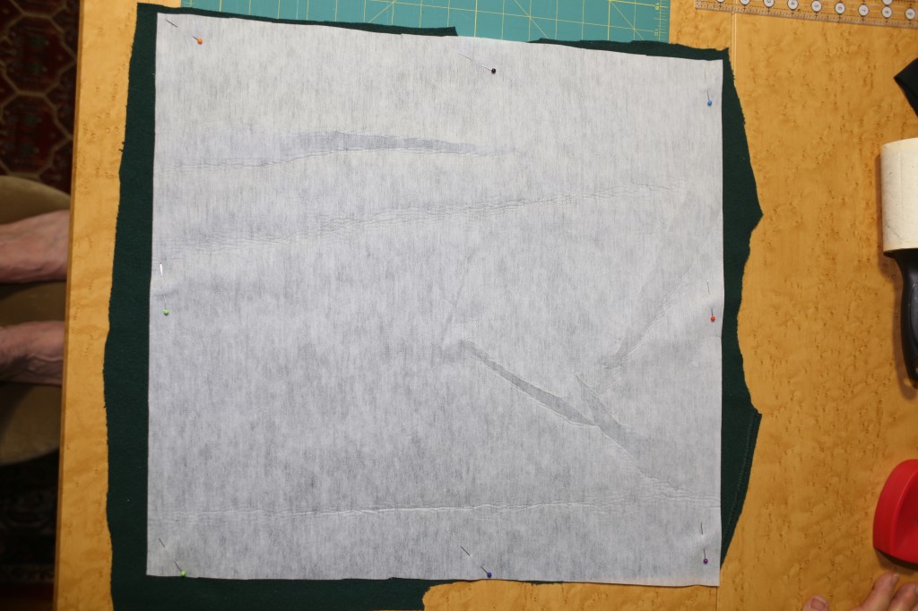 Here (below) I am making a rough estimate of how much interfacing to use. This is not the time to get cheap!