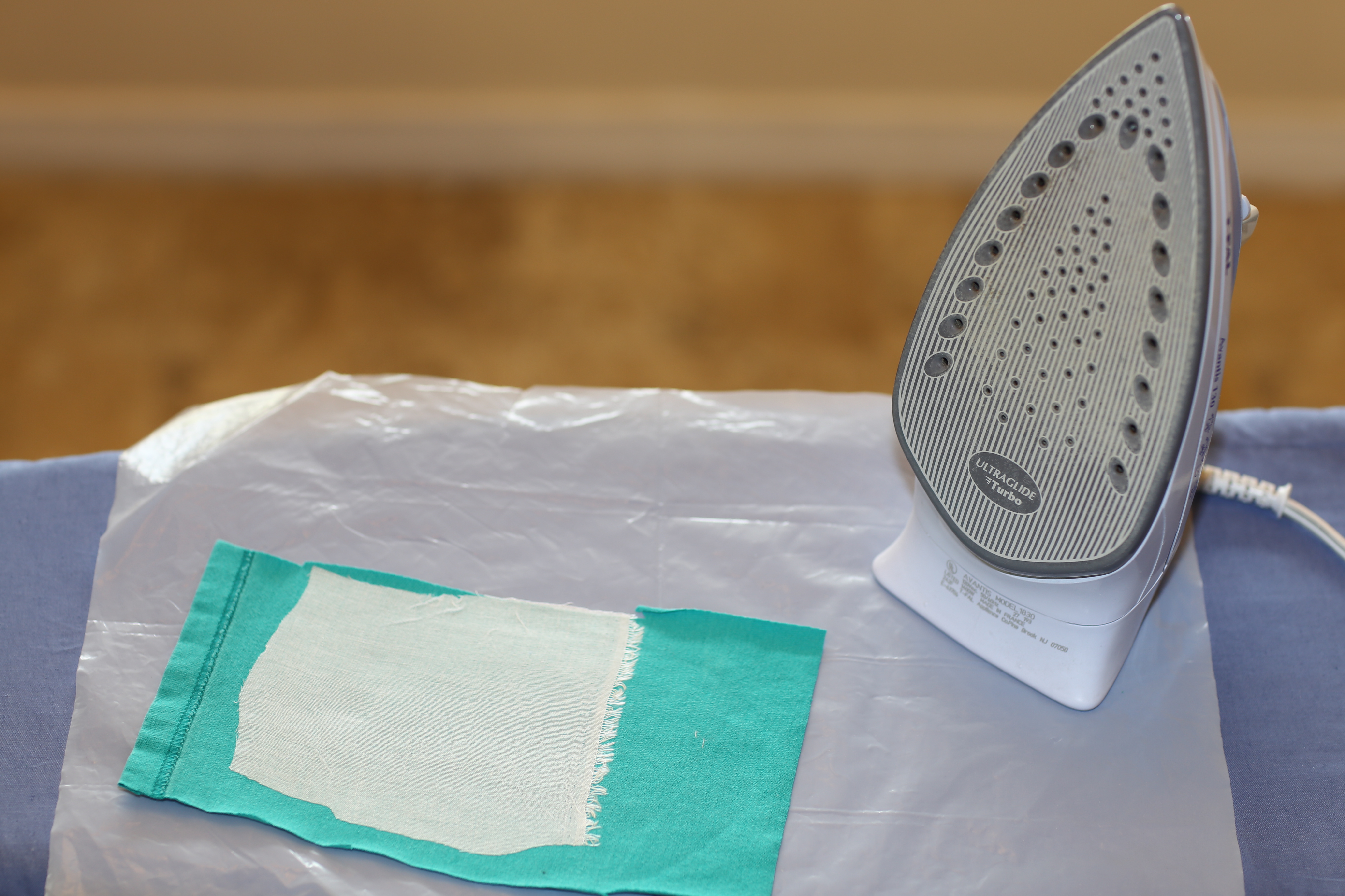 I used my super-old T-Fal iron that has seen better days (but still has even heat). There is a bunch of adhesive on the heating plate, but I just don’t care – it’s not my nice iron!