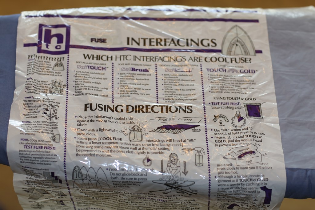 Next step: Measure, cut, and apply interfacing (I used mostly Pellon 911FF).