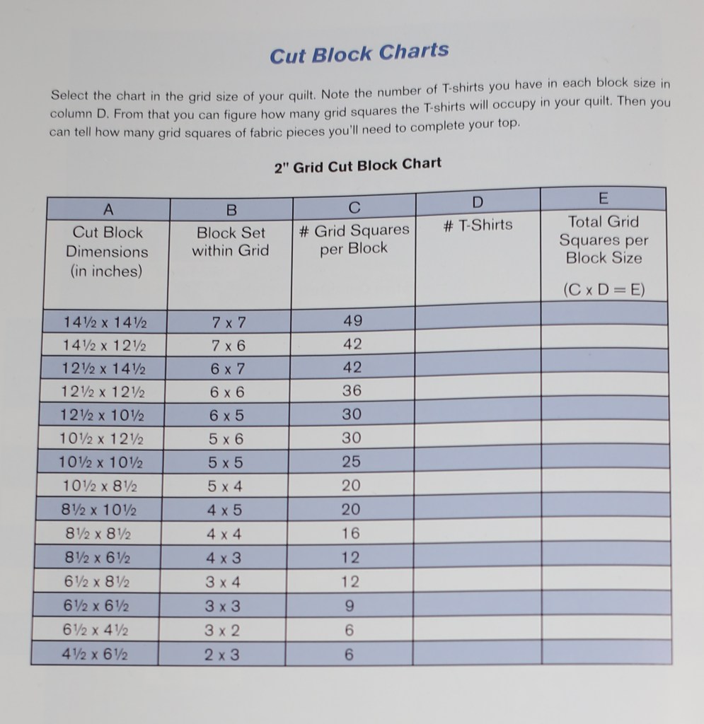 2) What size quilt would she like?  Based on the number of shirts received, making a queen sized quilt might be possible, and that’s what she wants.