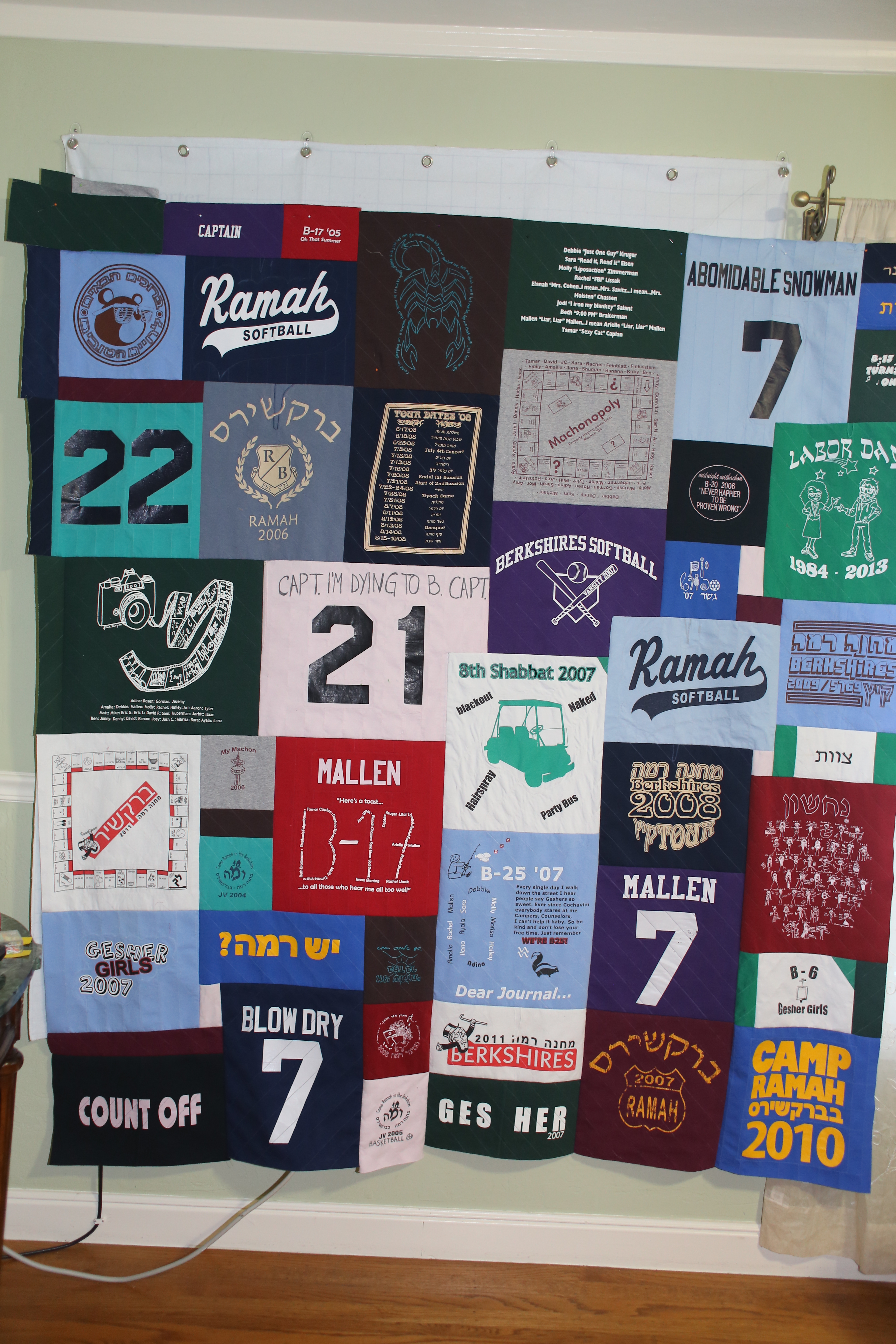 My niece has spent probably the last decade of summers at Camp Ramah and collected T-shirts, sweatshirts, jerseys, etc. to prove that she had a blast!